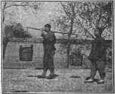 1)」というのは「騒動をおこす」とか「もめ事」,すなわち‘trouble maker’といった意味だが,元来は鉾をふるって戦うこと,また鉄の三叉鉾をぶんまわす大道芸のことだから,そういうムキムキの暴れん坊と言う意味にもとれる。ヘッドランドが