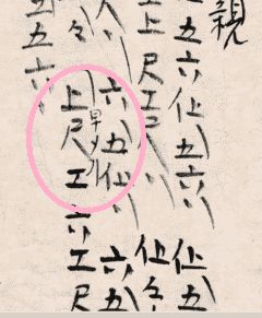 という例が見える。この譜ではこれまでの例において「仩」で表記されていた符が、オクターブ下の「上」で表示されている。
